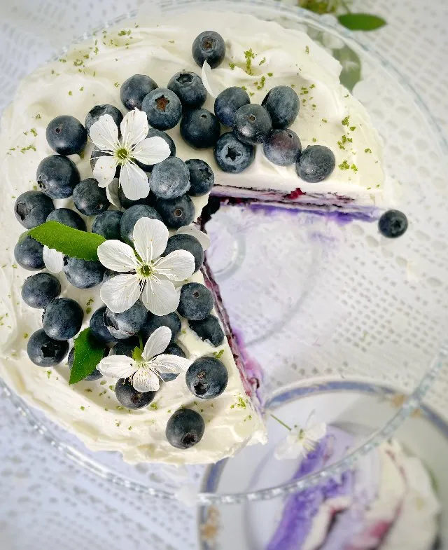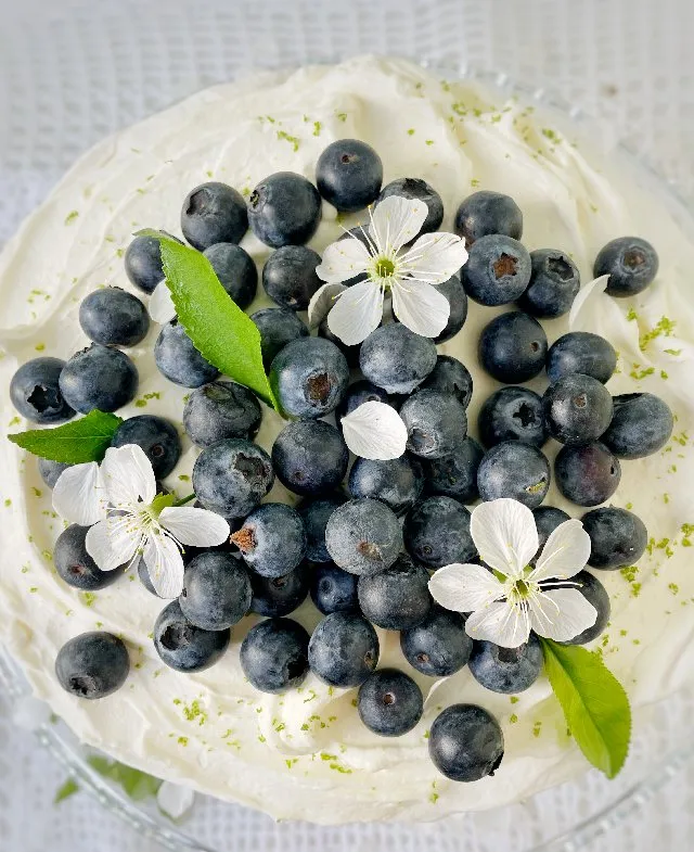Ніжний, немов хмаринка, вишуканий, неймовірно гарний 🥰 Я можу дуже довго розповідати про те, який цей торт чудовий. Ну, ви ж бачите це фото? Якби фото могло передавати смак, повірте, ви б зараз все покинули і побігли його готувати 😉 Це чудовий варіант, якщо ви любите меренговий рулет, але замучилися боротися з його найбільною складністю — скручуванням, так щоб він не тріскався і не розповзався в руках. Цей десерт дуже ніжний й ідеально його збирати за 1-2 години до подачі. Але не лякайтеся, меренгові коржі та чорничну начинку можна приготувати заздалегідь, крем з маскарпоне готується 10хв, його також можна підготувати. І ще 15хв на зібрати ваш торт та прикрасити ягодами ☺️ Вмовила? Тоді пішли готувати!