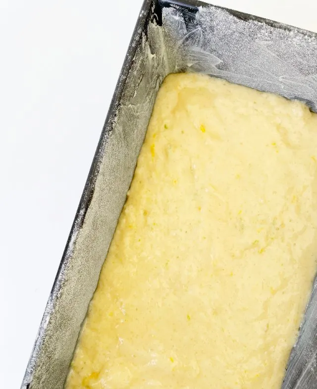 - Зʼєднайте сухі та вологі суміші до однорідності та вилийте тісто в форму.