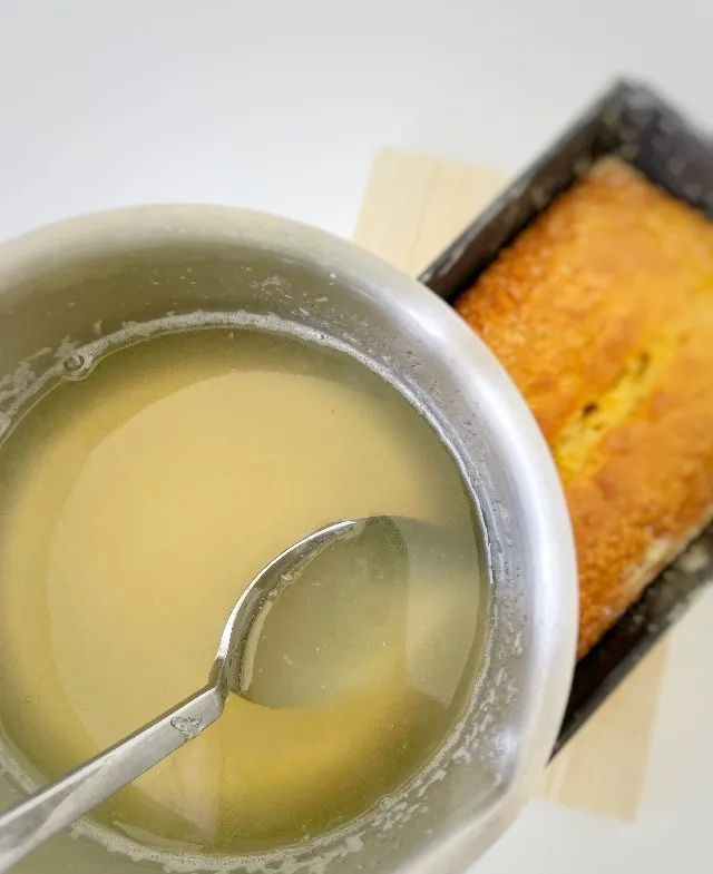 - Поки кекс випікається, приготуємо сироп для просочування. Вичавіть сік з двох лимонів та лайма, повинно вийти десь 200мл. Додайте цукор, доведіть до кипіння і проваріть 5 хвилин.