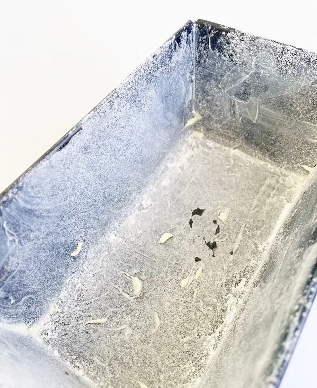- Підготуйте форму для кекса. Для цього потрібно зробити “французьку рубашку”: змастити форму мʼяким вершковим маслом, щедро посипати боки і дно борошном, потім перевернути і постукати, щоб зайве борошно висипалося з форми. Тепер ви можете не боятися, що готовий кекс прилипне до форми.